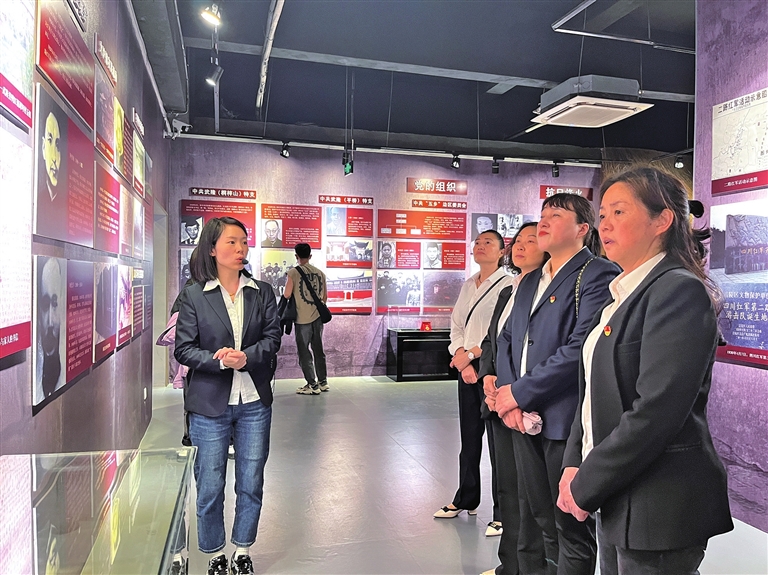 凤山街道巷口社区、油坊社区组织干部职工在区档案馆开展爱国主义教育活动,聆听红色故事、致敬英雄模范、传承革命精神。活动现场,大家在工作人员的带领和讲解下,认真观看陈列室内的实物和资料。