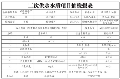 二次供水水质项目抽检报表