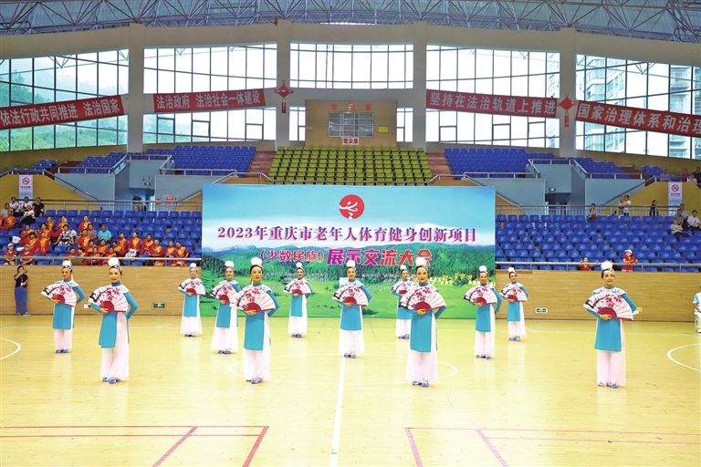 本报讯 (记者 湛伟 潘柠杏)9月20日,2023年重庆市老年人体育健身创新项目(少数民族)展示交流大会在区体育馆开幕。