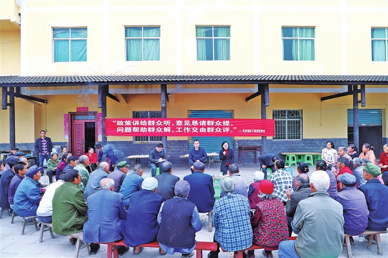 一农家院坝内,40余名村民与镇、村、社干部围坐在一起,你一言我一语摆起了“龙门阵”,很是闹热。