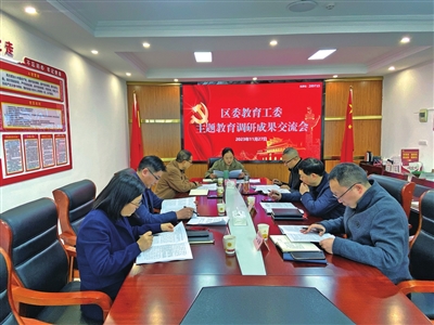 自主题教育启动以来,区教育党工委深入贯彻落实市委、区委关于主题教育的相关要求,高站位谋划、高标准推进,在以学铸魂、以学增智、以学正风、以学促干上下功夫,以有力举措扎实推进主题教育见行见效,推动全区教育高质量发展。