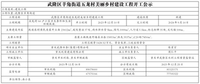 武隆区羊角街道五龙村美丽乡村建设工程开工公示