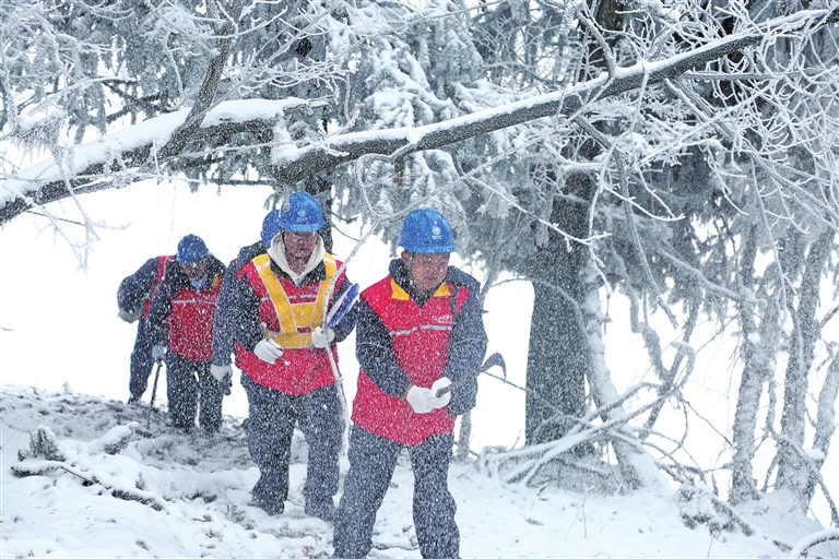 本报讯 (记者 杨 丹 王 鑫)受新一轮冷空气影响,连日来,武隆高海拔地区出现了大面积降雪,为及时应对降雪天气对电力线路及设备带来的不良影响,国网武隆供电公司闻“雪”而动,迅速组织辖区供电所员工踏雪巡线,及时排除安全隐患,确保寒潮天气下的电网设备运行保持在最佳状态。