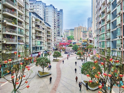 寒冬时节,行走在白杨坪片区,处处都是新景新气象。新粉刷的黄红相间外立面既温馨又养眼,街边文化创意元素增添城市活力,孩童们嬉戏玩闹,老人们围坐话闲,一派欣欣向荣的景象。