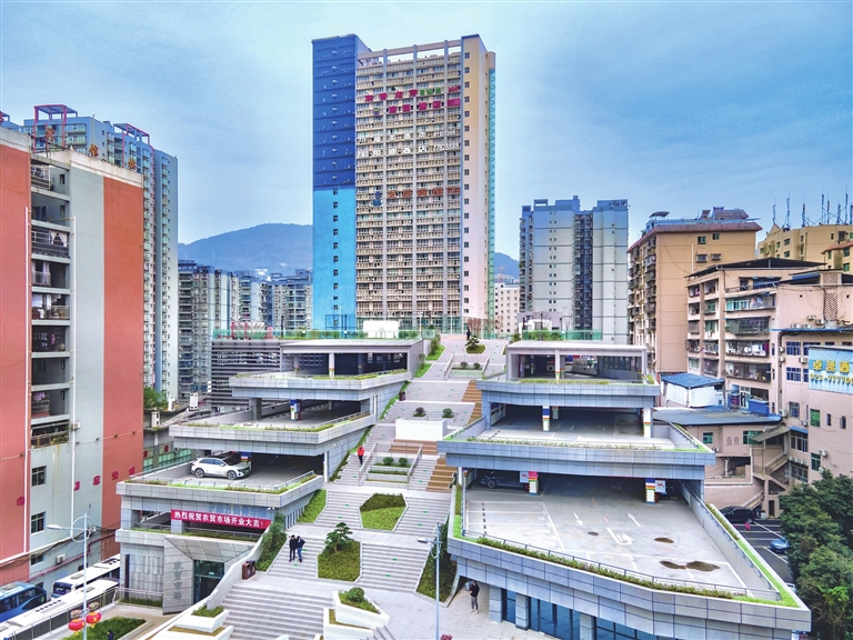据悉,作为五龙城片区民生项目之一的汽车站上盖物业项目备受市民群众关注。现在,改造后的汽车站是一座集客运站、停车场、生鲜超市、休闲娱乐等功能于一体的现代化、多功能、综合型的客运中心。改造建成后共计6层,增设停车位457个,新建成870平方米的菜市场和155平方米的超市。不仅进一步推动了武隆区产城景融合,还缓解了周边居民及外来游客停车难问题,有效提升了群众获得感、幸福感、安全感。