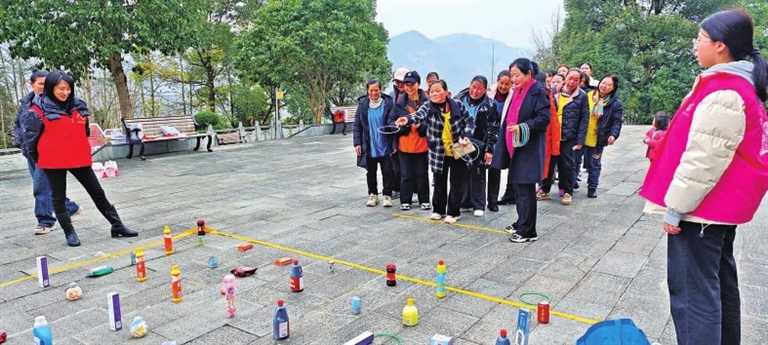 在后坪乡,妇女同胞们三五成群、有说有笑,大家积极参与空杯传水、投篮、跳绳、拔河等趣味活动,充分展现了女性同胞们活力四射的风采。