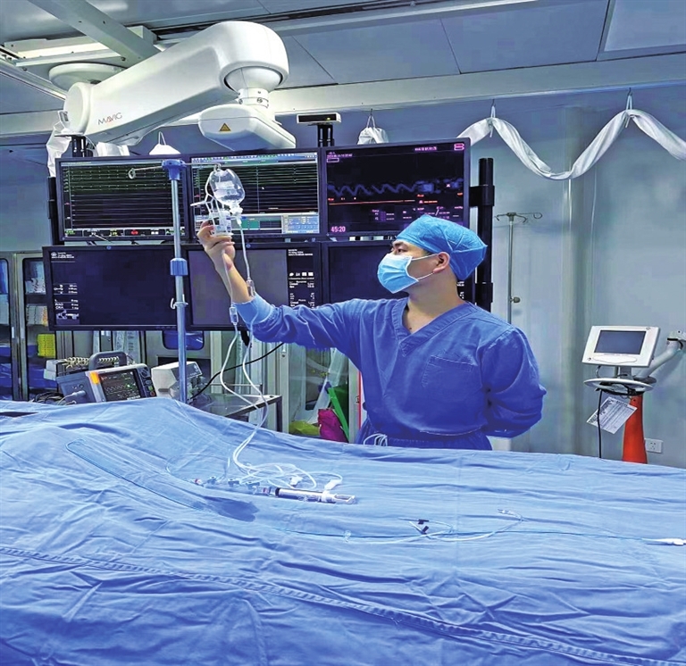 介入中心作为医院的重要科室之一,承担着各种复杂、精细的介入手术任务。同时,由于介入治疗的特殊性,患者不仅要承受身体上的疼痛,还会有较高的心理压力和恐惧感。在介入中心的日常工作中,朱锐不仅要协助医生完成手术,负责患者的术前准备、术后回访,还要做好患者的贴心人,用耐心、细心和爱心化解患者的恐惧,确保治疗的顺利进行。
