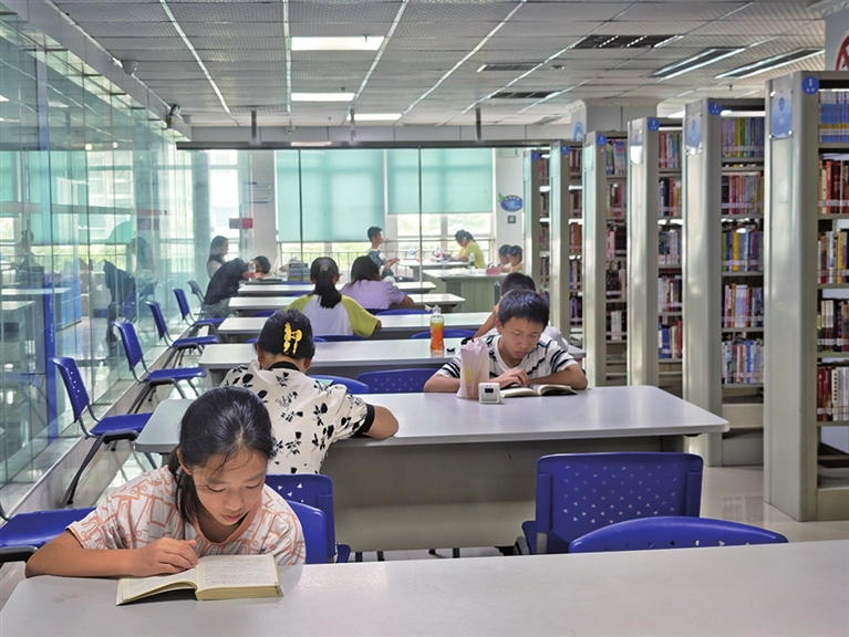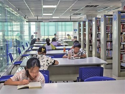 本报讯 (记者 罗雪琴)随着暑期和高温天气到来,在书香中度过假期成为了不少市民、学生度过炎炎夏日的首选。近日,记者走进区图书馆、24小时自助图书馆发现,前来看书、学习的人络绎不绝,大家尽情沉浸在浩瀚书海里,感受清凉的同时不断充实着自己。