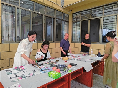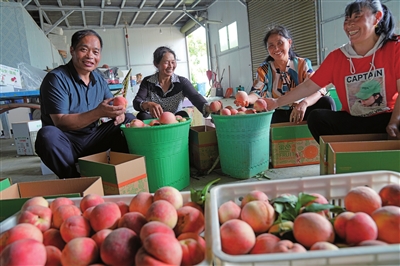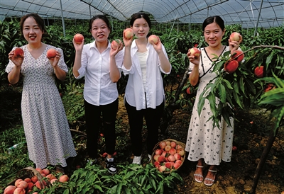 走进脆桃园,只见一棵棵桃树郁郁葱葱,枝丫上挂满了红润饱满的果实,空气中散发出淡淡的果香。被采摘活动吸引而来的区文联的艺术工作者们在桃园中穿梭游览,从眼前的美景中找寻艺术灵感,并用自己手中的相机和笔记录下丰收的喜悦。