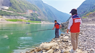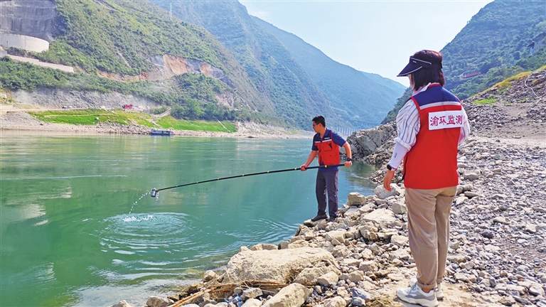 当日上午10点,室外地面温度已超过了43℃,明晃晃的太阳像一团火球,刺得人睁不开眼。在乌江白马段,区生态环境监测站工作人员顶着烈日,熟练地进行水质采样、分类保存、现场记录等工作,为环境保护提供监测数据,确保第一时间掌握水质状况。