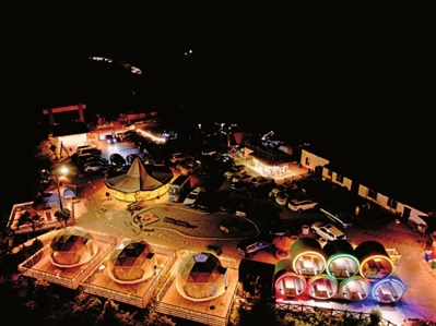 “营地设置了树林自搭区、星空帐篷区、特色餐饮店,供游客露营团建,同时游客还可以体验山地越野、探洞探险、水上桨板等娱乐项目,参与篝火晚会、烟花秀等活动,度过一个舒适、愉快的纳凉之旅。”云山风车露营基地负责人刘航告诉记者,今年,该露营基地已经接待了8万余名游客。
