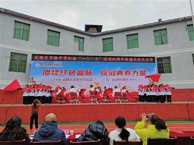 本报讯 (记者 陈思言)为加强爱国主义教育,丰富校园文化生活,12月9日,区实验中学举办了以“赓续红色血脉 绽放青春力量”为主题的纪念“一二·九”运动89周年校园文化艺术节。