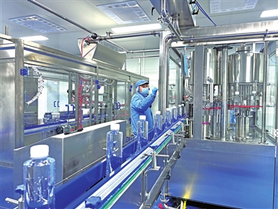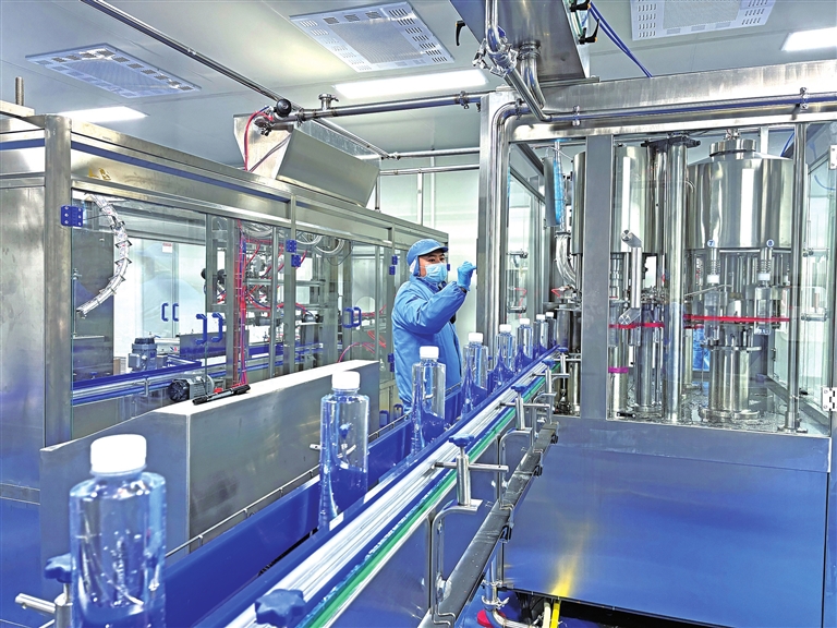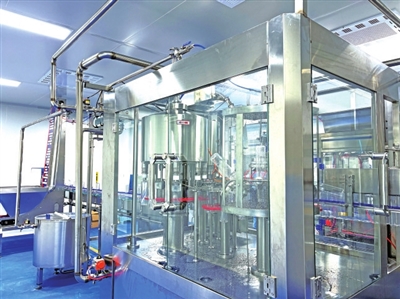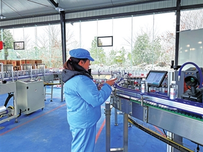 走进位于仙女山街道桃园村万家沟组的生产厂区,各个功能分区布局合理,吹瓶、杀菌、灌装、贴标……全自动生产线正在高效运转,包装严密的饮用水通过自动传送设备,到达包装点进行封膜装箱。工人们正守在各道工序前,紧盯流水线,确保生产有序。