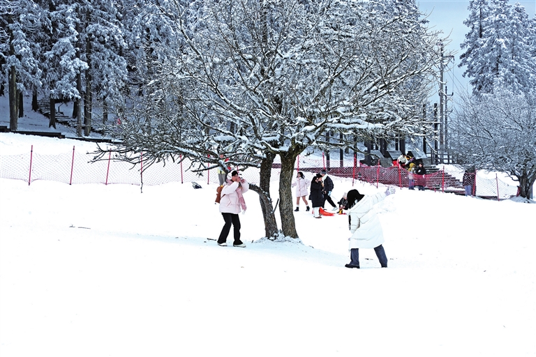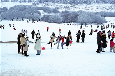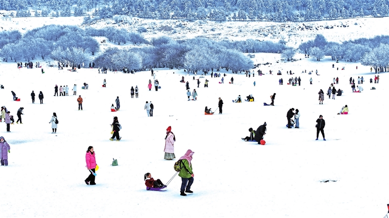 自我区正式面向游客推出“武隆旅游通行卡”以来,各大景区游人如织,迎来游客接待小高峰。在仙女山大草原,皑皑白雪将整个草场装扮成白色的童话世界,游客朋友们三五成群漫步其中,或打卡拍照,或嬉戏游玩,还有的则尽情地玩着滑雪板,享受着冰雪运动带来的乐趣。