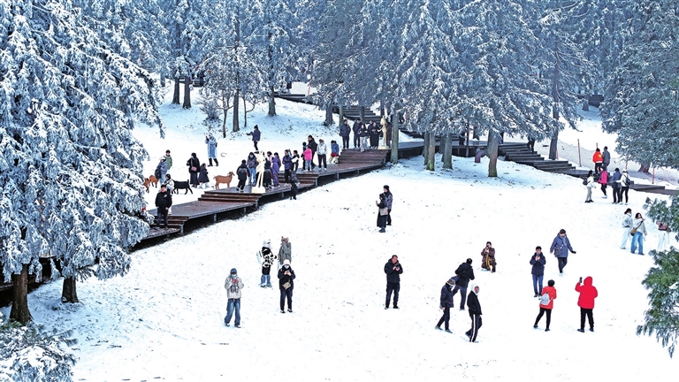 据了解,随着降雪天气的到来,春节后,仙女山景区冰雪游也是持续火热,每天接待游客都在5000人以上。据气象部门预计,今年仙女山降雪天气将持续到2月底,想要玩雪耍雪的游客可别错过了。