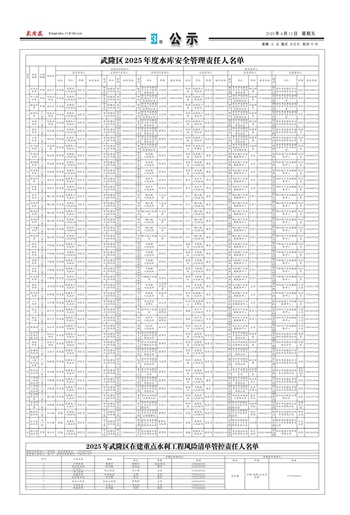 2025年武隆区在建重点水利工程风险清单管控责任人名单