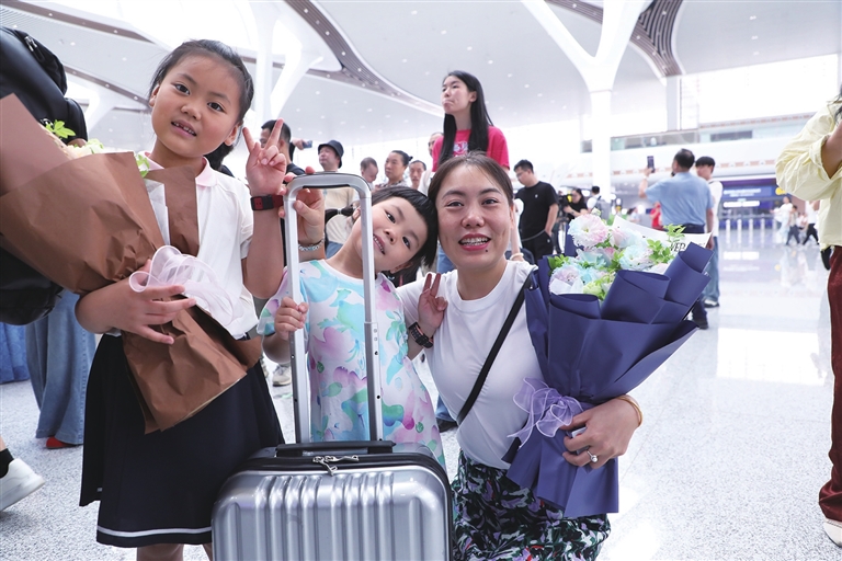 站台外的人们欢聚一堂,高举手机迫不及待共享武隆进入“高铁时代”的喜悦,欢呼声与快门声交织,笑声在崭新的站厅里清脆回荡。