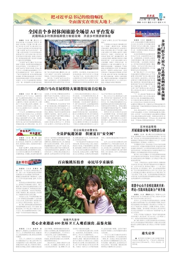 本报讯 (记者 杨 丹)近日,市农业农村委、市文旅委以“春赏花、夏纳凉、秋采摘、冬农趣,看乡景、品乡味、享乡俗、忆乡愁”为主题,联合主办了“2025巴渝美丽乡村休闲旅游行推介暨‘乡游悠’AI平台发布活动”。据了解,这是全国首个乡村休闲旅游全场景AI平台,该平台集中展示全市各区县美丽乡村新风貌、农耕文化新风尚、休闲旅游新场景,促进农文旅融合,激发乡村消费潜能。
