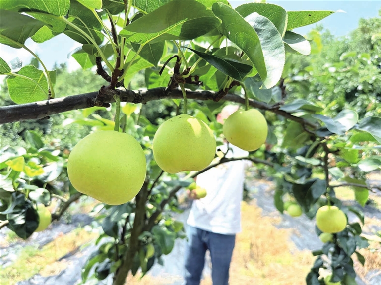 本报讯 (记者 代 娟)近日,位于仙女山街道荆竹村的寻梦园水果基地迎来丰收季,10余亩“翠玉梨”已褪去青涩,饱满金黄的果实压弯枝头,正式进入采摘期,为市民消暑纳凉、体验田园乐趣提供了绝佳去处。