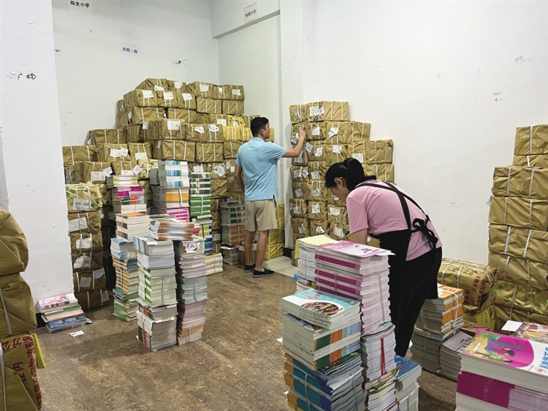 本报讯 (记者 罗雪琴)开学在即,书香先行!这几天,我区新华书店的全体员工正紧锣密鼓、高效推进43万余册新教材的分发与配送工作,确保新学期开学前将新书送到每一位学生手中。