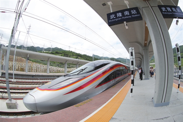 2025年6月27日,渝厦高铁重庆东至黔江段开通运营,最高时速按350公里运营,每日开行动车组列车最高达54列。重庆到武隆最快30分钟可达。武隆喀斯特山水秘境,成为主城市民触手可及的“后花园”。